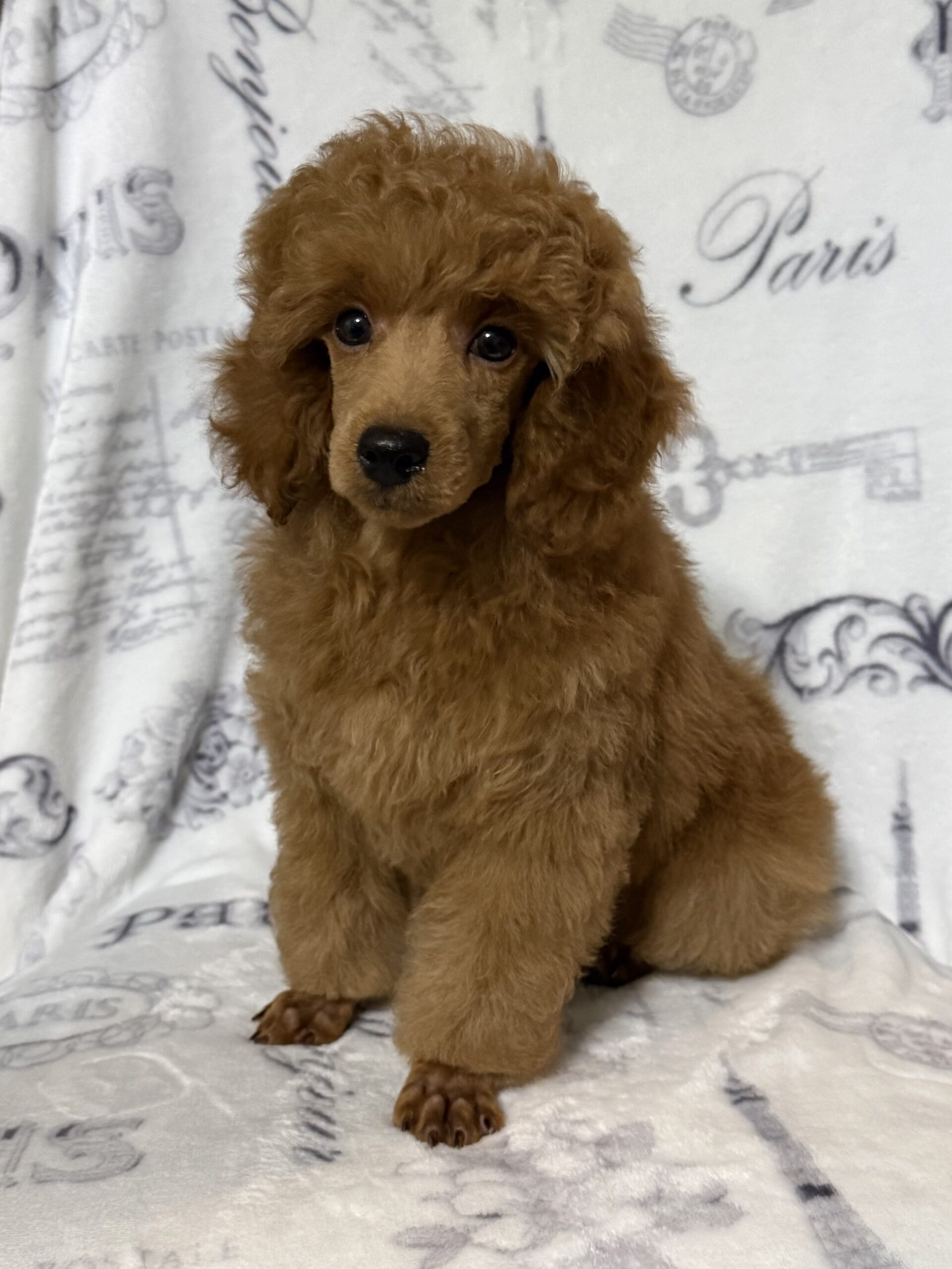 D.O.B December 12, 2025. Miles will be a miniature poodle. He has age-appropriate vaccines, he has seen our vet for his wellness exam. Miles is a fun-loving and sweet puppy. He is AKC registered.